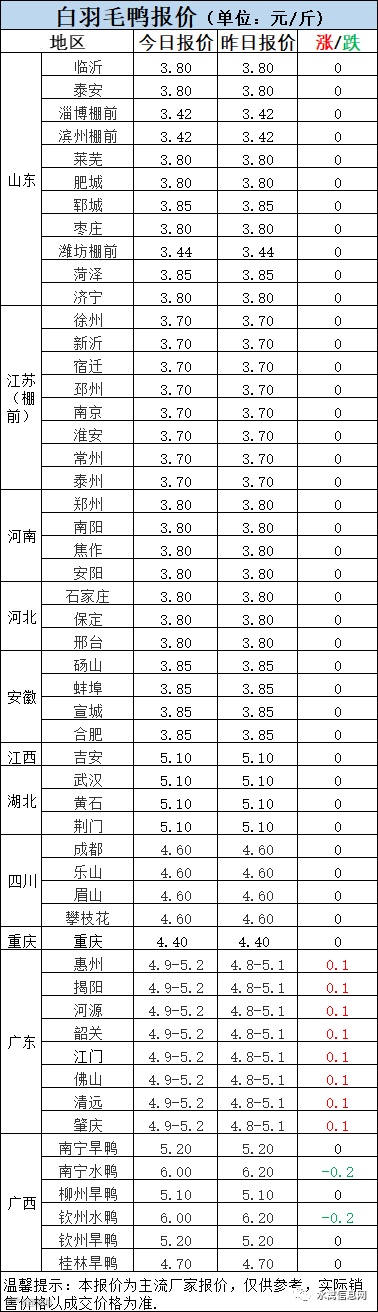 明日樱桃谷鸭苗报价,北方继续上涨0.3元/羽,南方上涨0.2-0.3元/羽。疫情既是风险也是机遇,严重影响补栏被动去产能的同时,疫情风险较低的区域也看到了机遇,补栏略有上升,鸭苗低位连续反弹。
