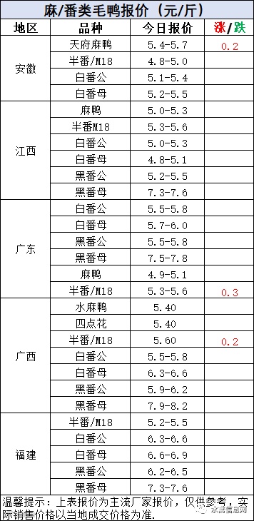 毛鸭报价