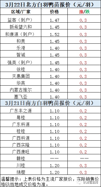 一、3月21日晚至3月22日 白羽肉鸭报价