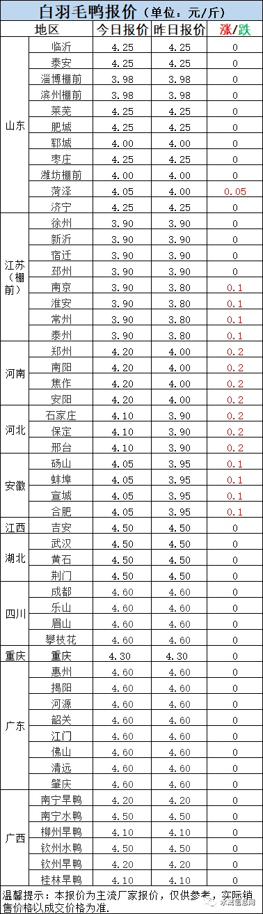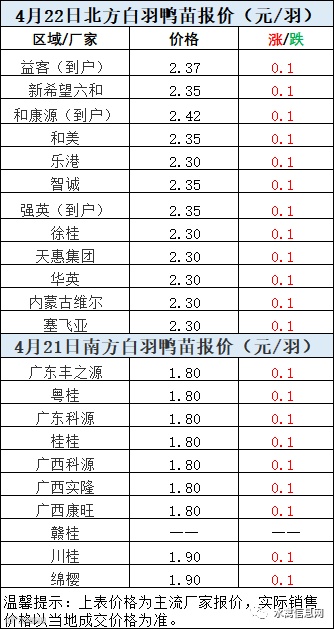 一、4月21日晚至4月22日 白羽肉鸭报价