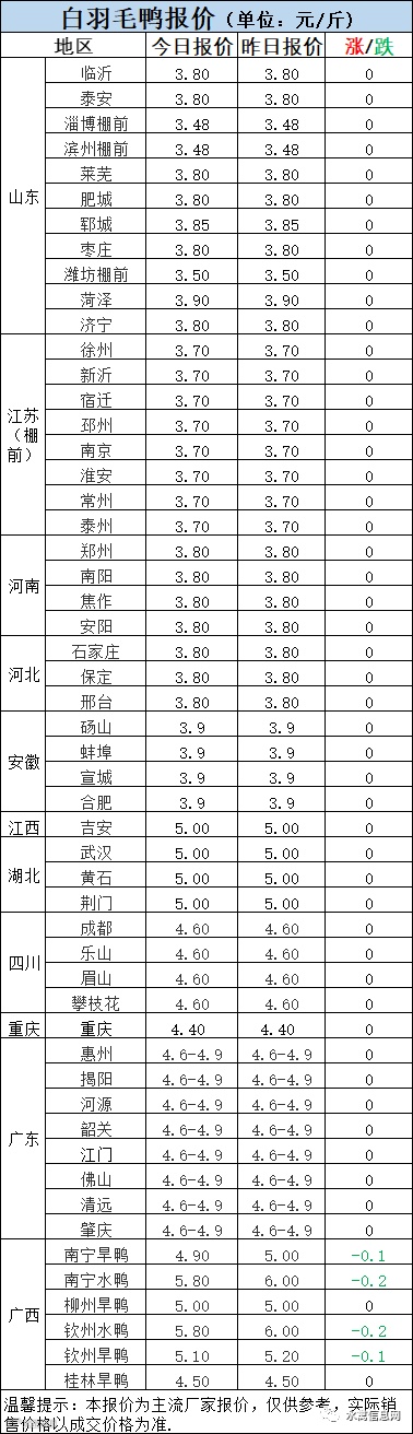 明日樱桃谷鸭苗报价,整体上涨0.2元/羽。连番操作,鸭苗强势上涨,打包也要挺价。