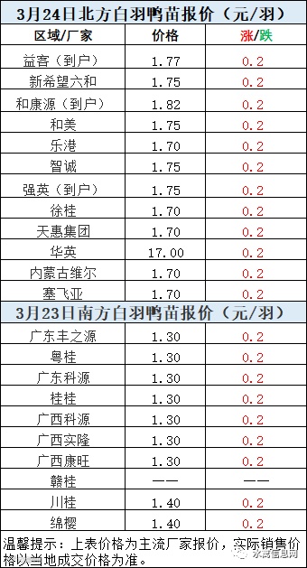 一、3月23日晚至3月24日 白羽肉鸭报价