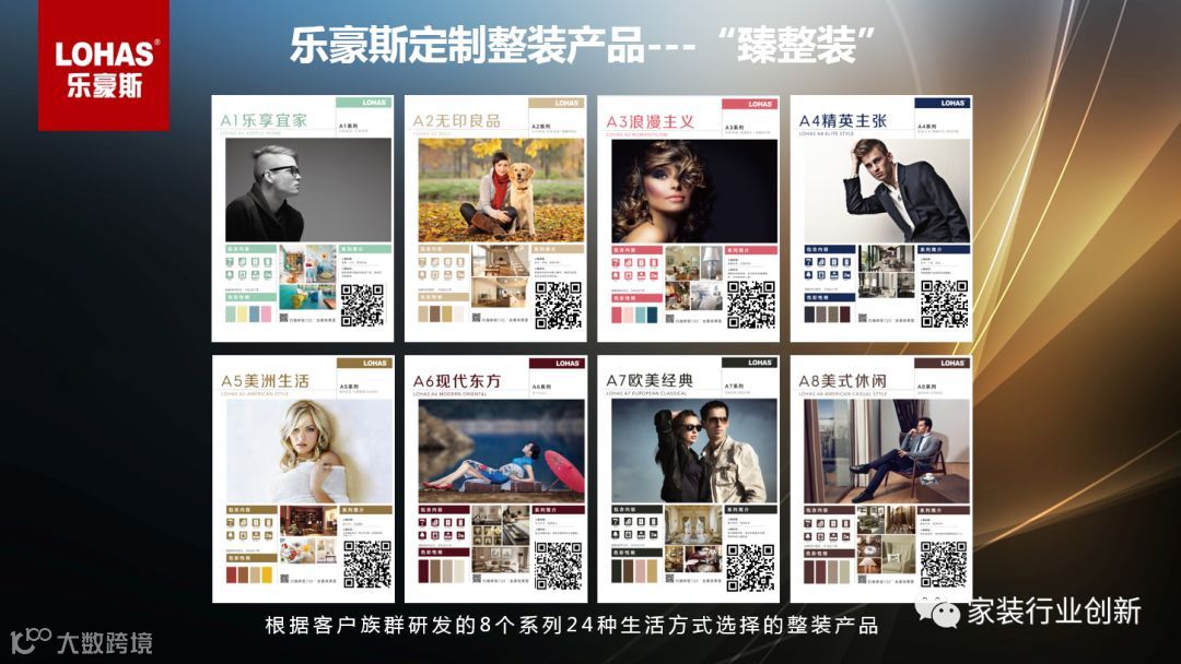 真正的整装,是以客户为中心的整体居家生活解决方案。基于乐豪斯庞大的全品类自有品牌家装供应链,我们先有研发再有产品元素,100%掌控自己的研发方向和细节——这其实是个“我要做出什么样的产品”的过程。就像去买汽车,车的基本配置都已齐全,只需根据自己的经济实力和喜好来选款式。家的装修也可以如此。乐豪斯将家装产品标准化,在四五年的时间做了A1-A8八款产品——客户需要的是一个完整的家。