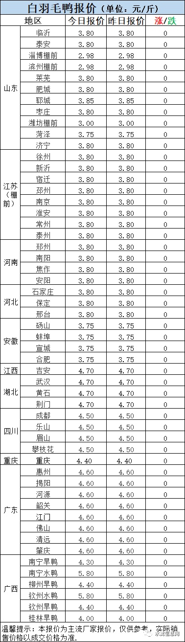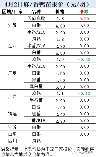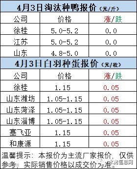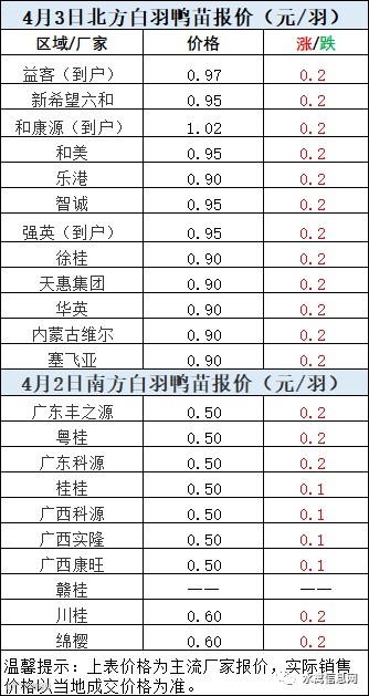 一、4月2日晚至4月3日 白羽肉鸭报价