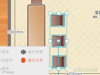 **多选布局操作:**可对被多选选中的家具可进行对齐操作,包括水平方向的均匀分布,竖直方向的均匀分布。