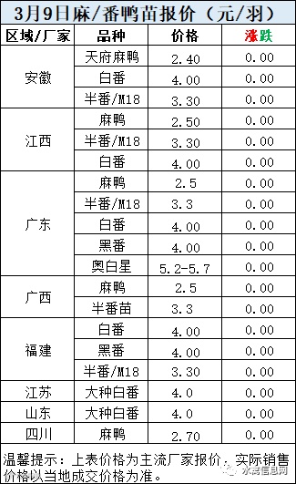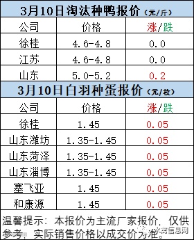一、3月9日晚至3月10日 白羽肉鸭报价