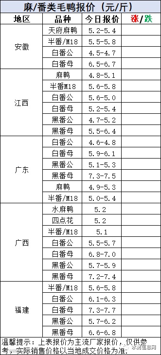 南方活禽区毛鸭整体偏强,广东区域跌宕下调。