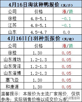 一、4月15日晚至4月16日 白羽肉鸭报价