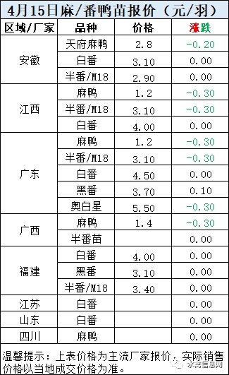 二、4月15日晚至4月16日 麻鸭/半番毛鸭报价。