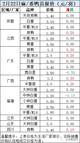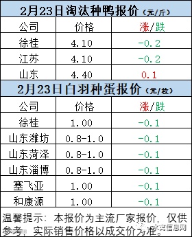 一、2月22日晚至2月23日 白羽肉鸭报价