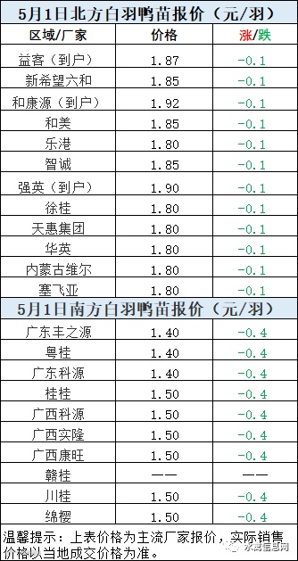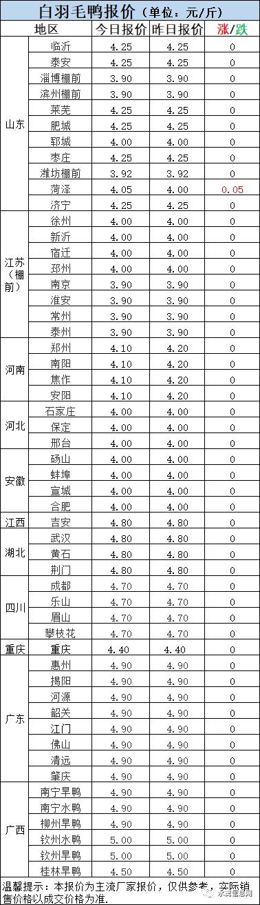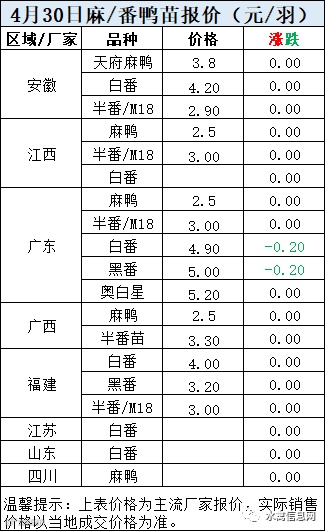 一、4月30日晚至5月1日 白羽肉鸭报价