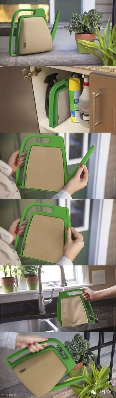 ▲超级省空间的洒水壶,不用时是扁平的利于收纳,用时注满水就可以使用了。