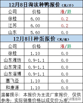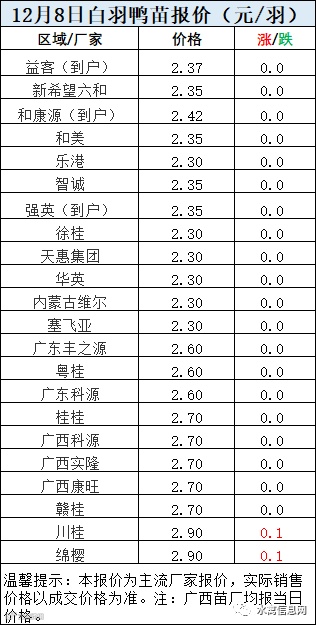 一、12月7日晚至12月8日 白羽肉鸭报价
