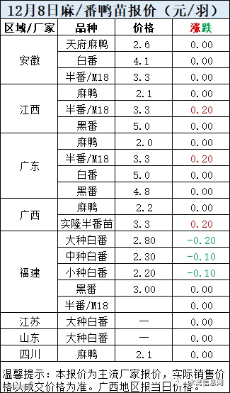 明日麻鸭苗报价涨后回稳。半番鸭苗继续上涨0.2元/羽。
