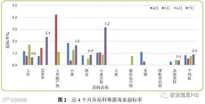 2、4-7月不同原料霉菌毒素超标率分析
