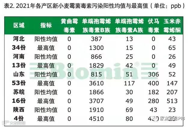 一、2021年霉菌毒素监测报告