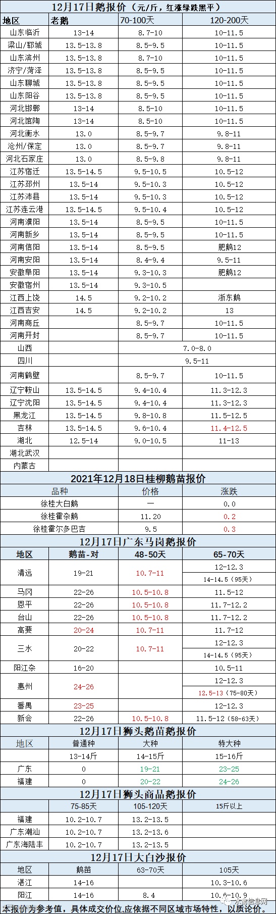 2021年12月17日各品种鹅苗价格