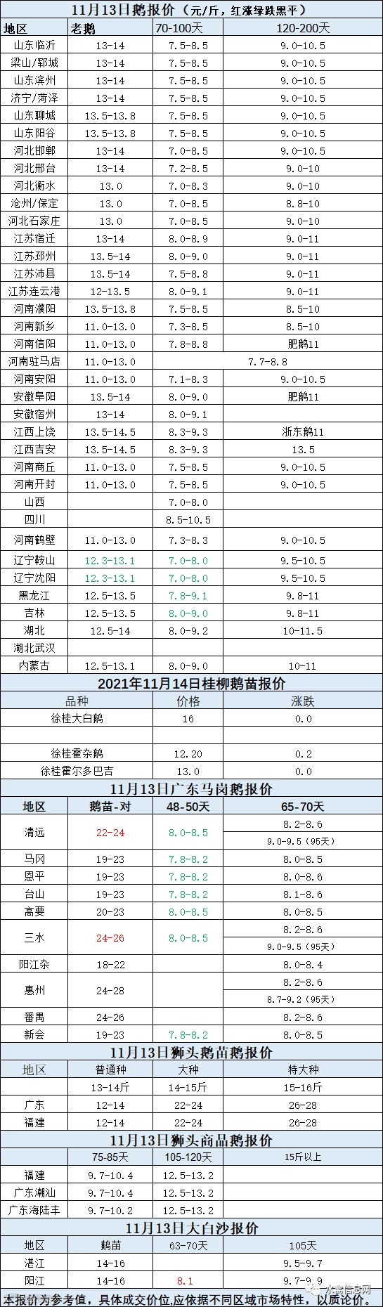 2021年11月13日各品种鹅苗价格