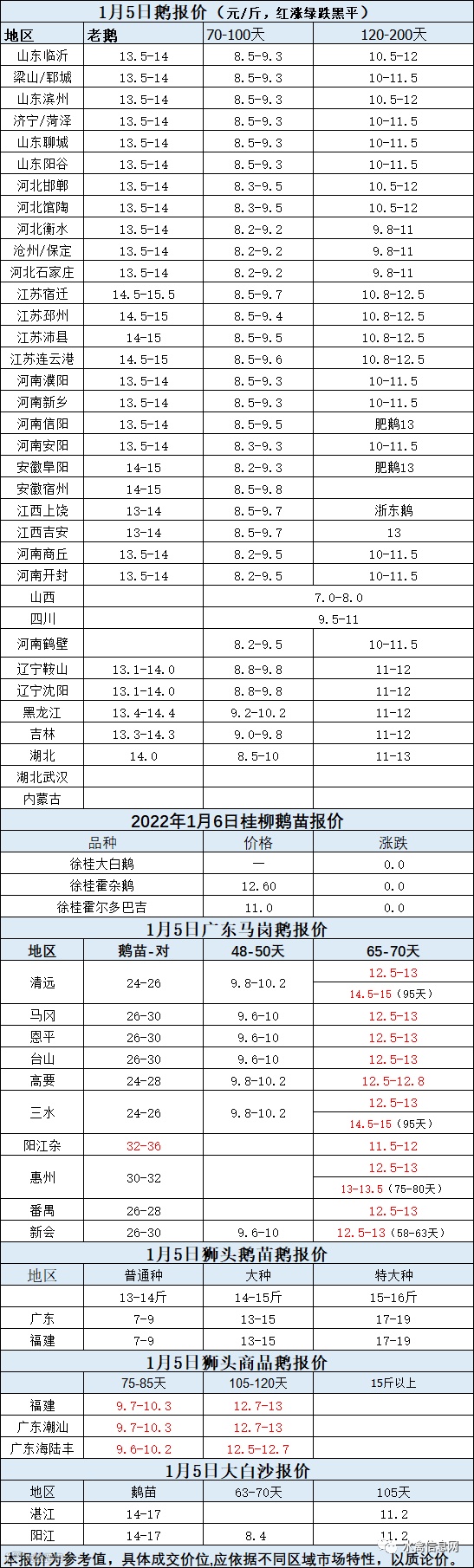 2022年1月5日各品种鹅苗价格