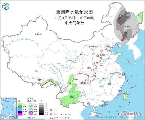 据中国天气网报道,今天(11月9日),寒潮的影响将基本结束,不过东北地区的降雪还会持续,黑龙江、吉林、辽宁等地部分地区仍会有大到暴雪出现。气温方面,今天,南方部分地区还会继续降温,除此之外,全国大部气温将缓慢回升。