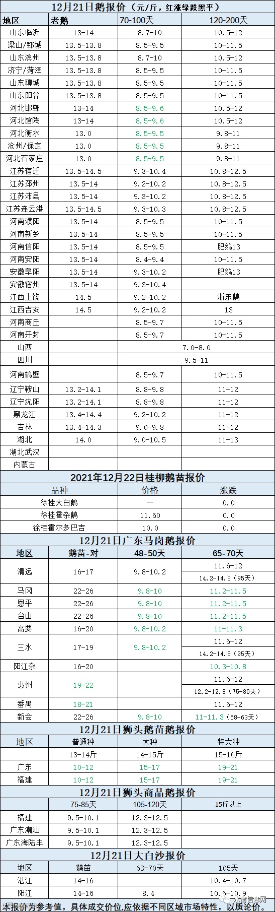 2021年12月21日各品种鹅苗价格