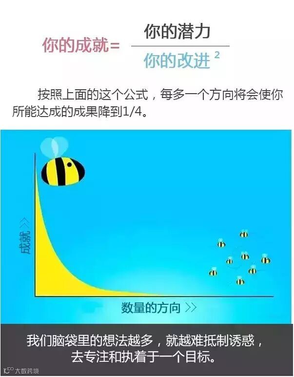 多数人失败不是因为能力不够,只是因为能力分散到太多的方向上,没有聚焦目标。成功的唯一策略是将所有精力聚焦在一个目标上。