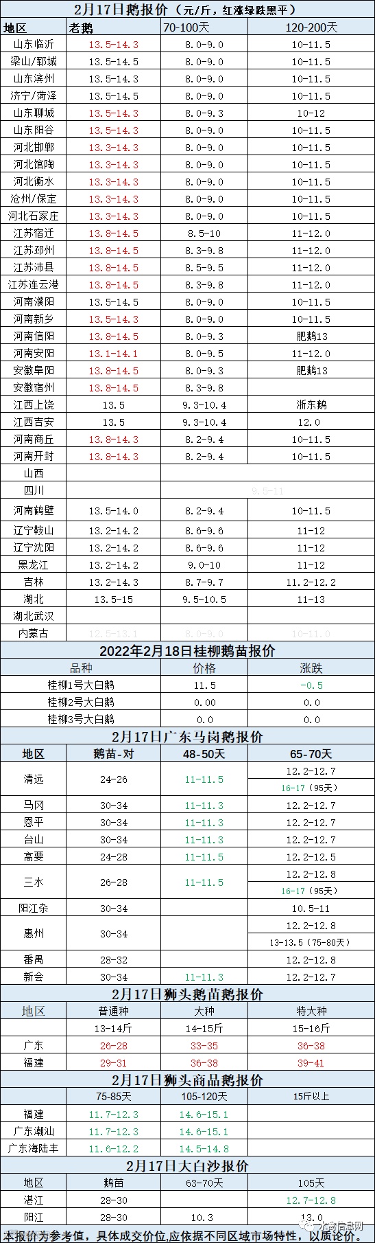2022年2月17日各品种鹅苗价格