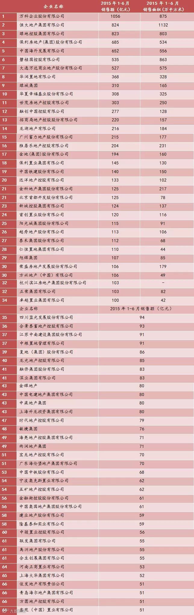 中国指数研究院近日发布了《2015上半年品牌房企销售业绩排行榜》。报告称今年上半年全国楼市逐渐回暖,1-5月,全国商品房销售额为24409亿元,同比增长3.1%,自2014年以来首次出现同比正增长。