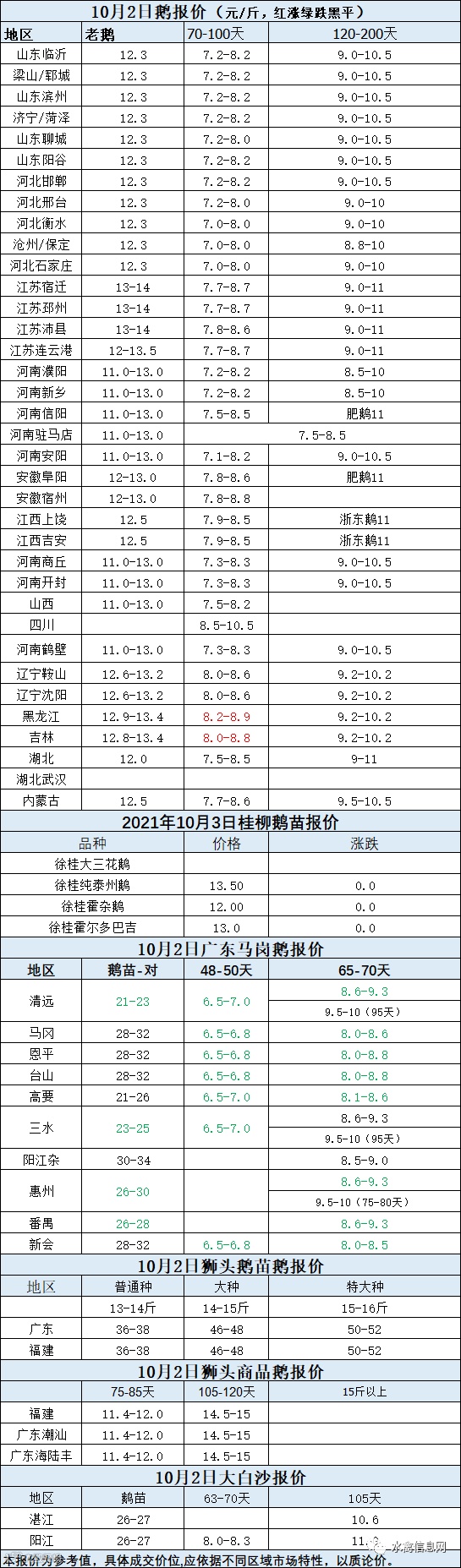 2021年10月2日鹅价快报