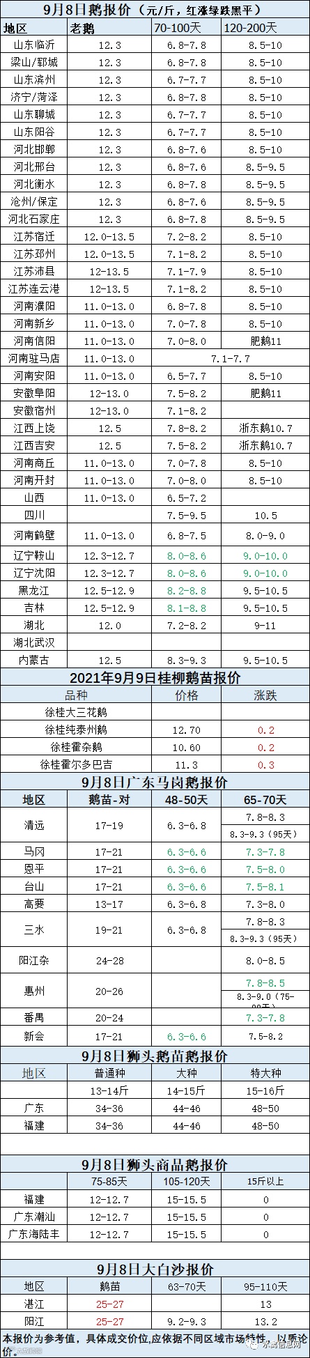 2021年9月08日鹅种蛋价格(元/枚)停报
