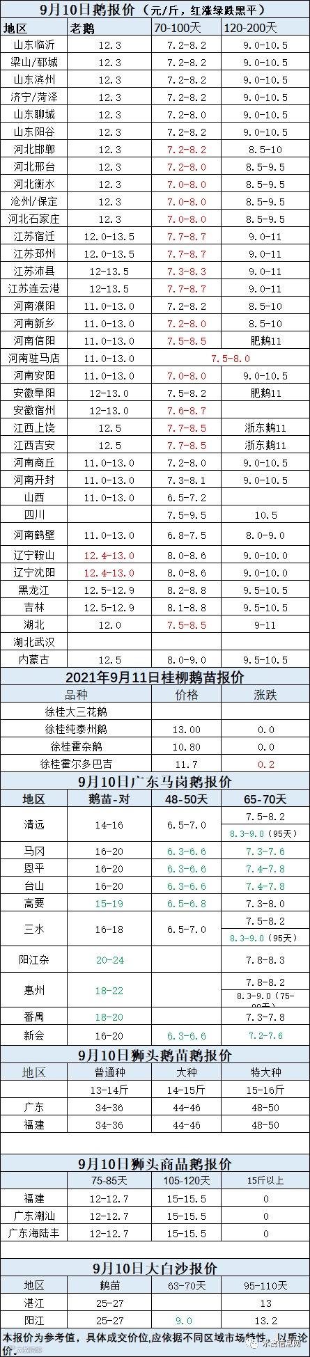 2021年9月10日商品鹅蛋价格(元/斤)
