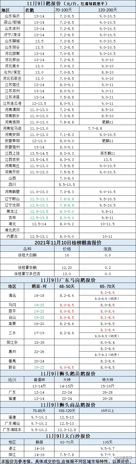 2021年11月09日各品种鹅苗价格