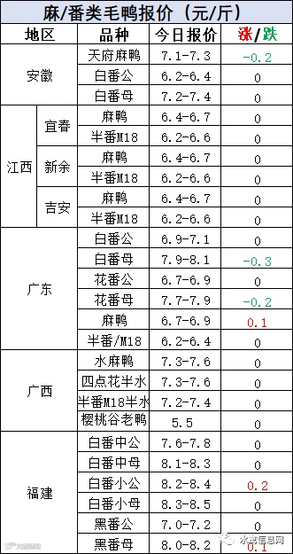 明日麻鸭苗报价跌后企稳。半番鸭苗报价暂稳。