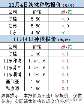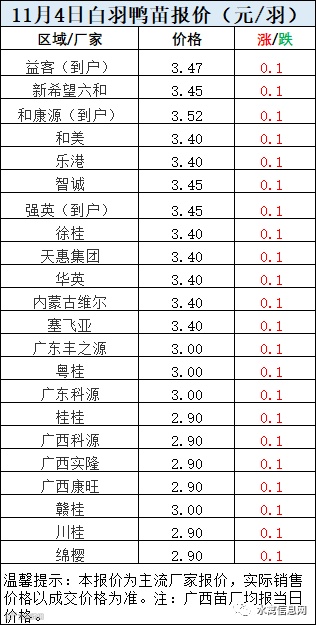 一、11月4日白羽鸭苗报价