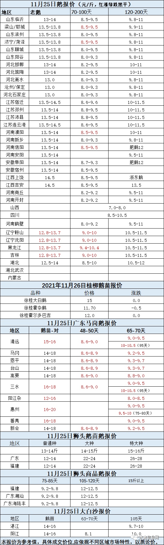 2021年11月25日各品种鹅苗价格