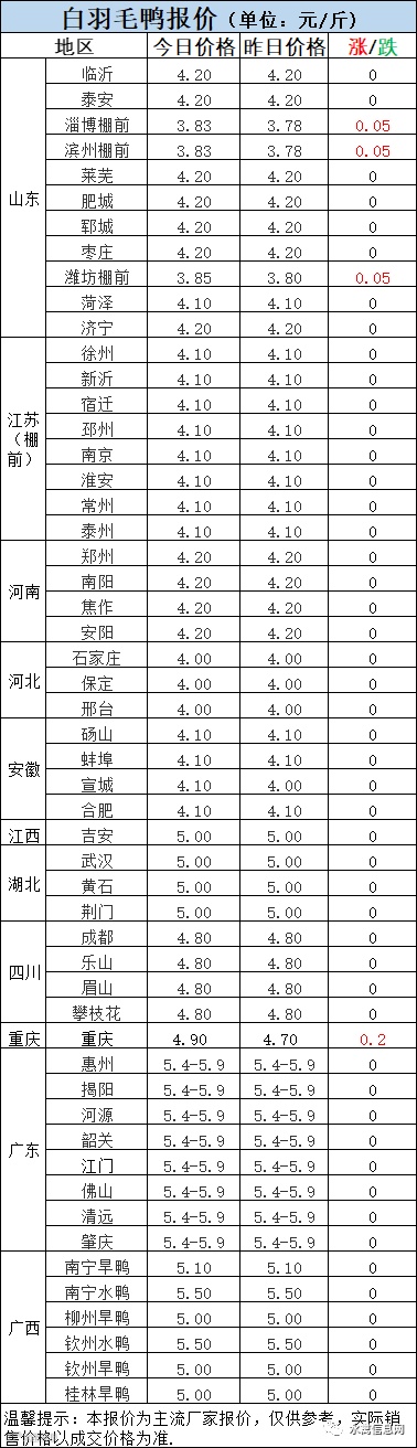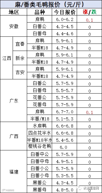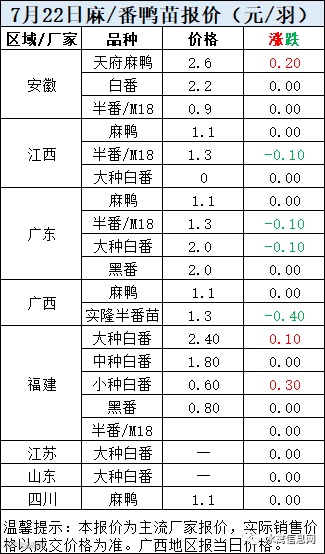 明日麻鸭苗报价稳定。半番鸭苗报价继续下滑。
