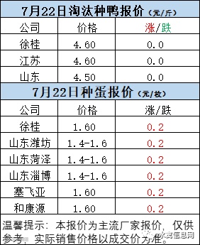 一、7月21日晚至7月22日 白羽肉鸭报价