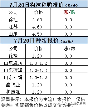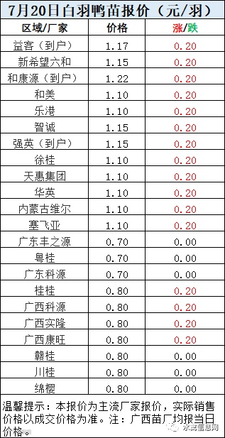 一、7月19日晚至7月20日 白羽肉鸭报价
