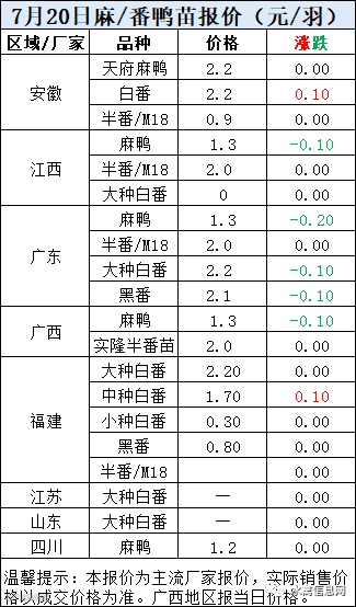 明日麻鸭苗报价继续下滑。半番鸭苗报价暂稳。