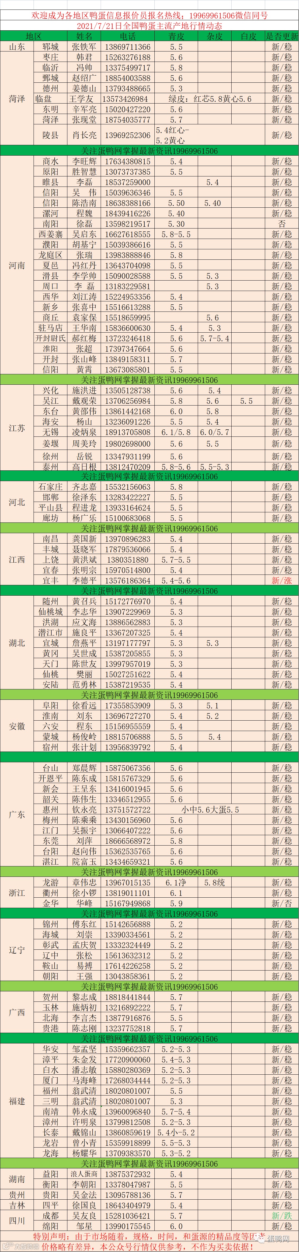 2021年7月21日鲜鸭蛋价格:初产至大蛋5.2(鸭蛋价格仅供参考)