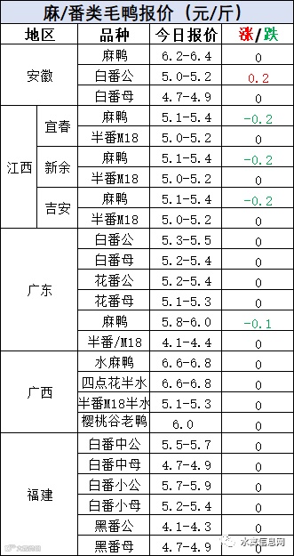 明日麻鸭苗报价下滑0.3元/羽。半番鸭苗报价暂稳。