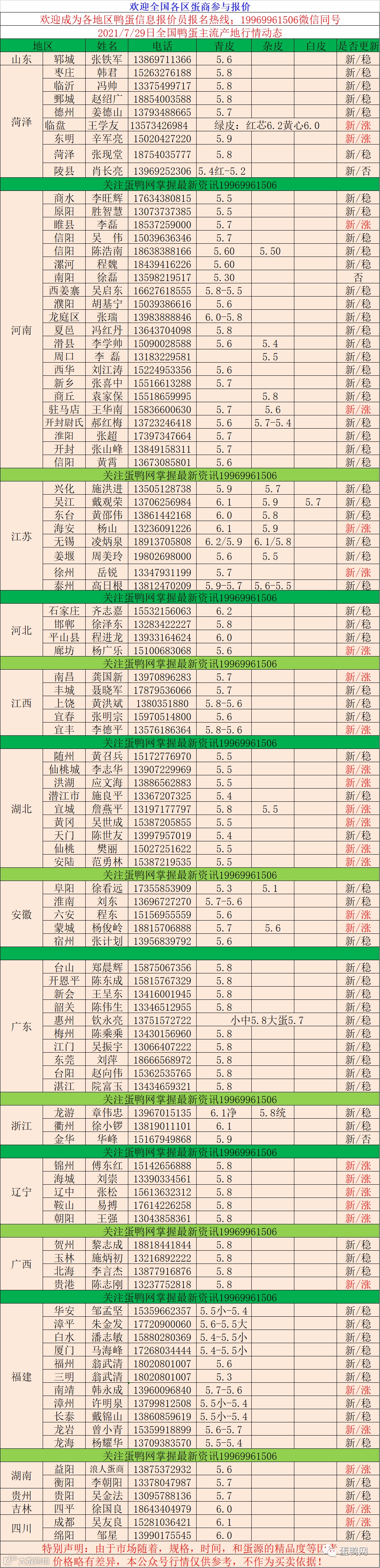 2021年7月29日鲜鸭蛋价格:初产至大蛋5.8(鸭蛋价格仅供参考)