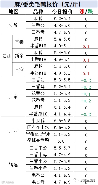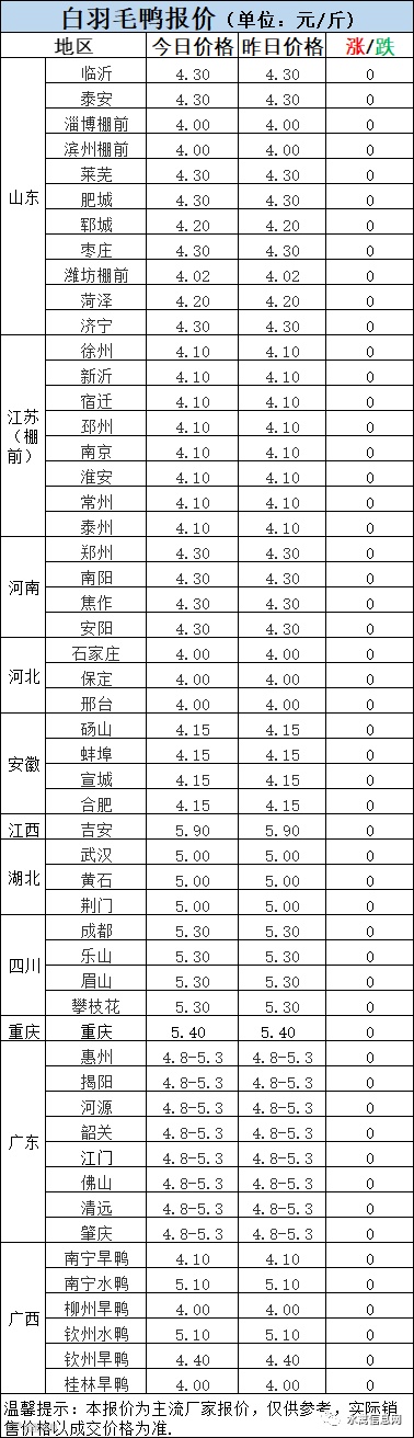 1:今晚北方毛鸭报价整体稳定。北方主产区台风暴雨天气来临,市场成交减少,市场波动似乎也在等待天气变化。