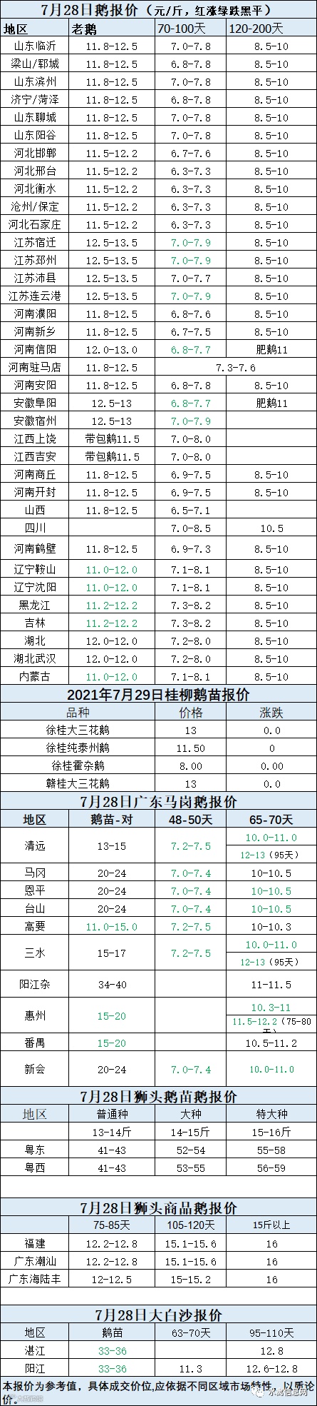 2021年7月28日鹅种蛋价格(元/枚)停报
