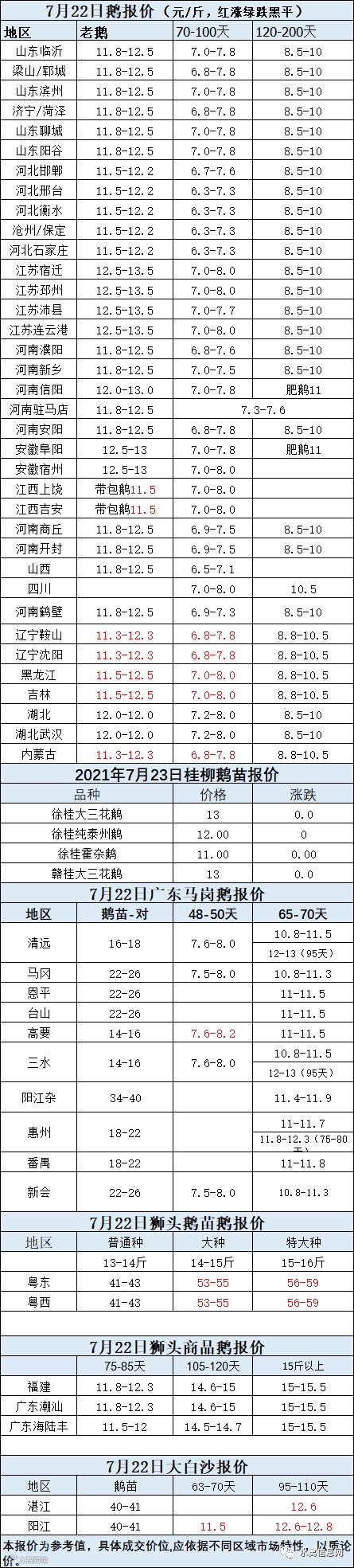 2021年7月22日鹅种蛋价格(元/枚)停报