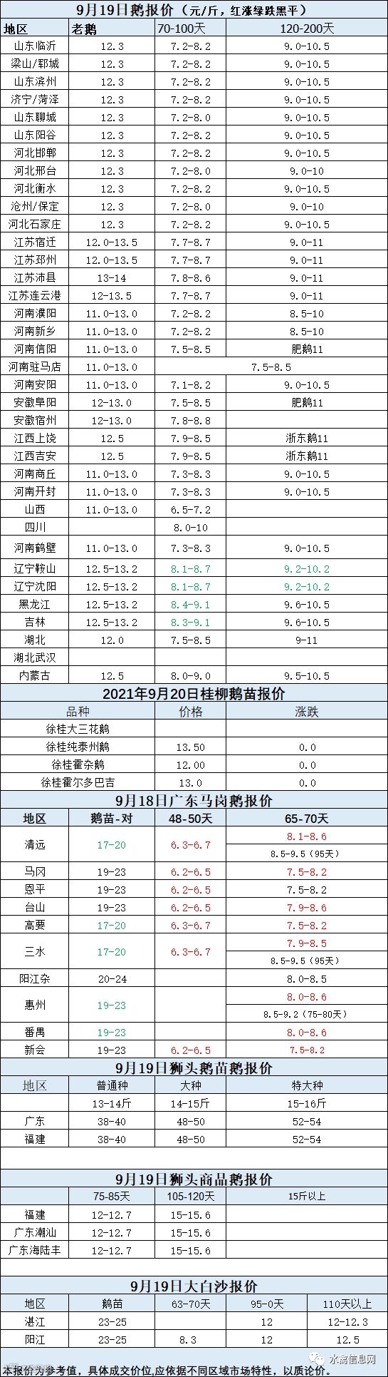 2021年9月19日各品种鹅苗价格