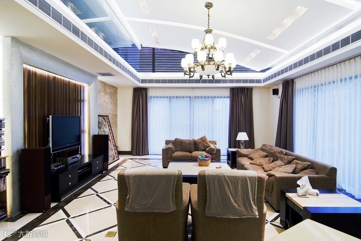 颜色:空间的色彩配置上,反对过分的色彩渲染,整体以沉稳大气的偏深色调为主,在木料选择上,也多是深色调的表现。金、银色系则是主要的配色运用,对于空间高贵感的营造,有画龙点睛的效果;