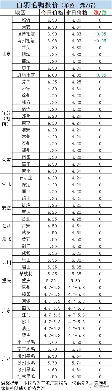 1:今晚北方毛鸭报价整体稳定,局部震荡调整。
