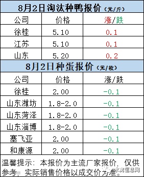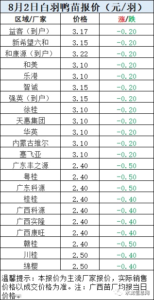 一、8月2日白羽鸭苗报价