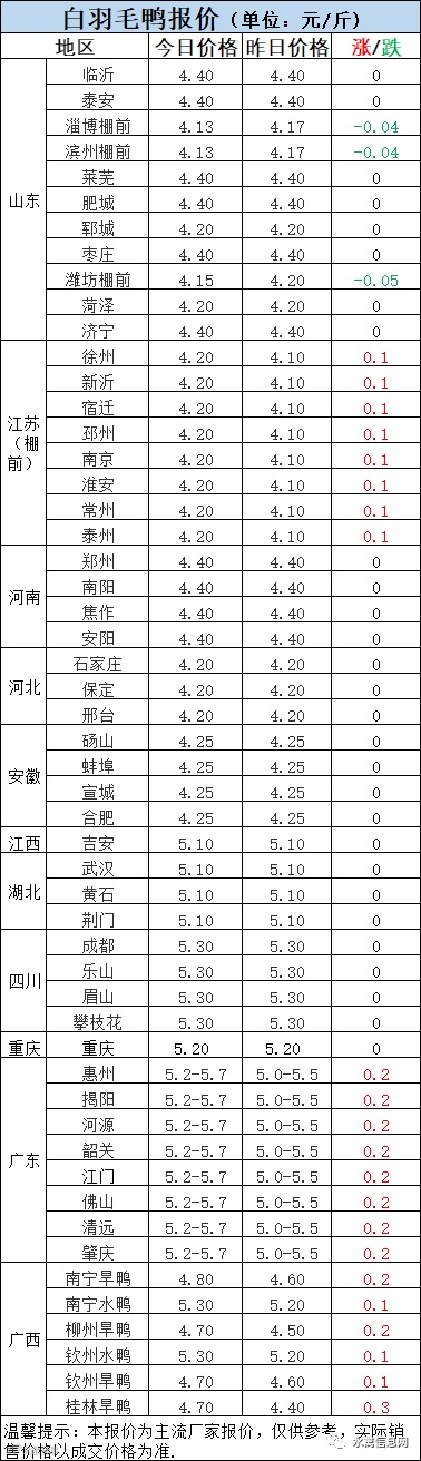 1:今晚北方毛鸭报价继续走强。山东棚前略有下滑,周边区域追涨不止。近两日鸭产品略呈颓势,拖带毛鸭价格整体式微,但也可看到当前冷藏库存普遍不高,后续可回收量仍不多。